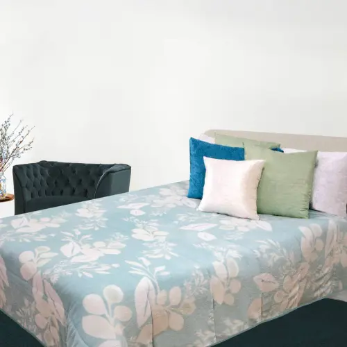 Fabricada com materiais de alta qualidade, a bouty Hibisco oferece uma textura suave e aconchegante. A sua leveza e respirabilidade garantem um descanso tranquilo e confortável, enquanto os detalhes requintados realçam a beleza do seu espaço.